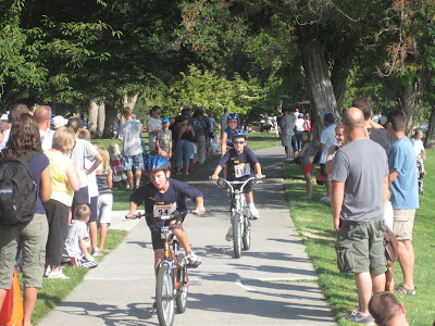 After we got all his stuff ready to go, we had quite awhile to wait before the race began but Spence loved watching all the other athletes.